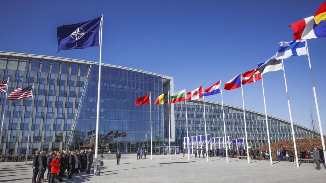 Флаги стран — участниц НАТО у штаб-квартиры организации в Брюсселе. Архивное фотоДзен